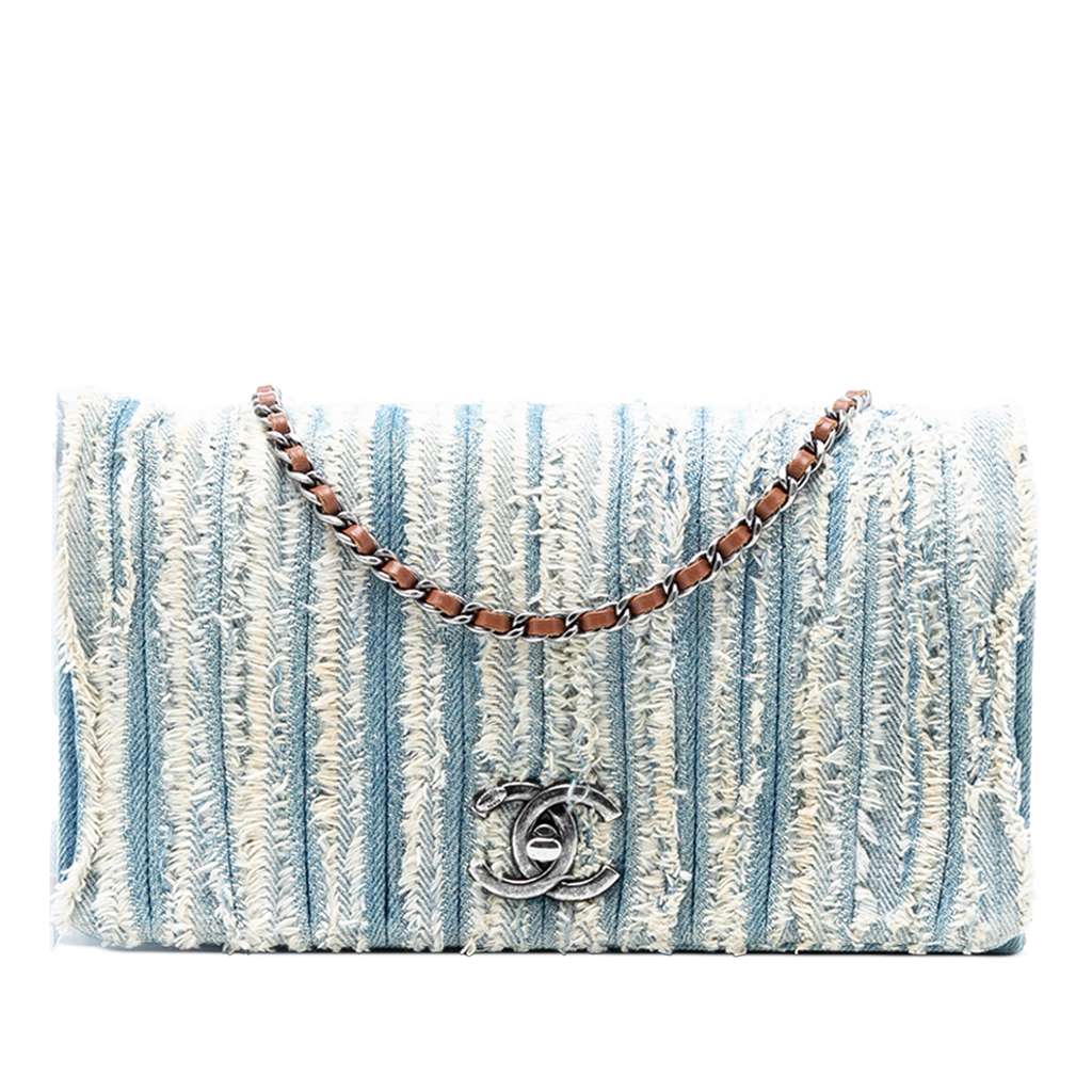 Chanel CC Denim Fringe Single Flap Blue Small Denim