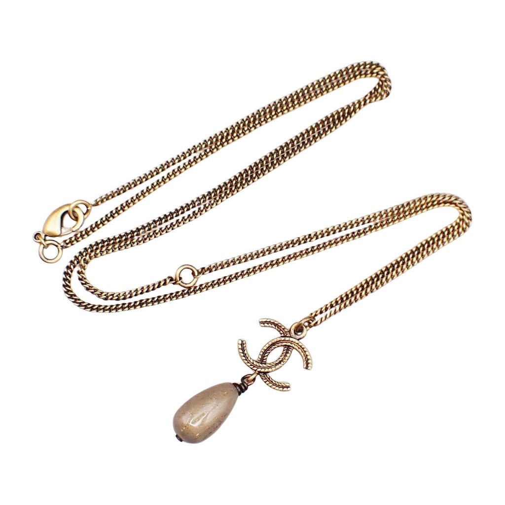 Chanel CC Drop Pendant Necklace Gold Metal | Pre-Loved Luxur