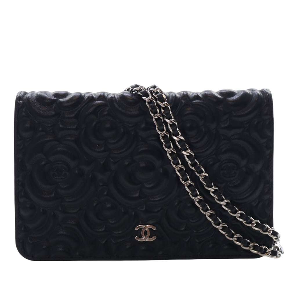 Chanel CC Embossed Lambskin Camellia Wallet On Chain Black M