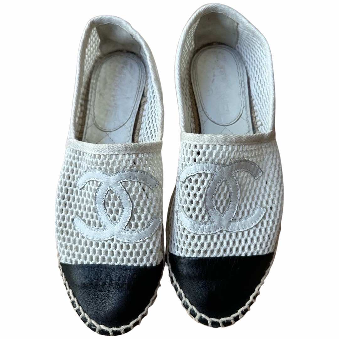Canvas mesh and leather toe flat espadrilles with CC Logo