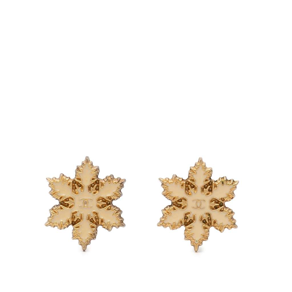 Chanel CC Gold Plated and Enamel Snowflake Push Back Earring