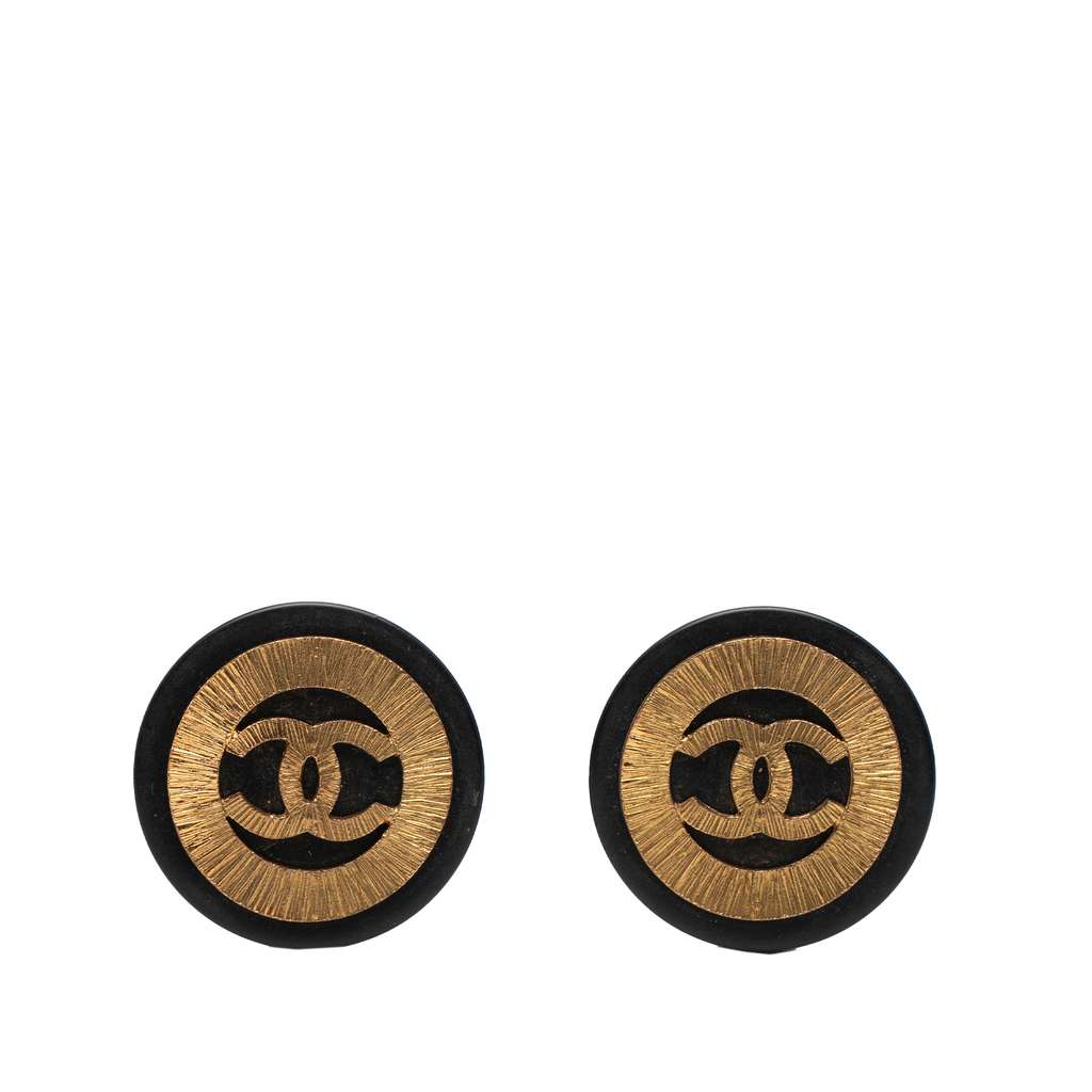 Chanel CC Gold Plated and Resin Round Button Clip On Earring