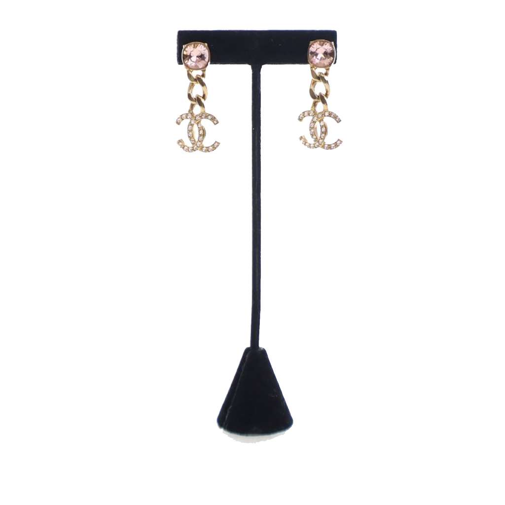 These earrings feature gold plated bodies, crystal embellishments, and push back closures.