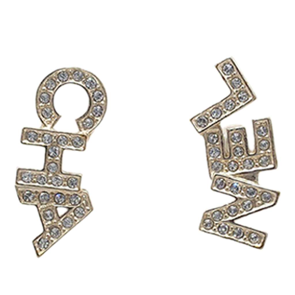 These earrings feature gold-plated metal body with crystals embellishments and a bullet back closures.