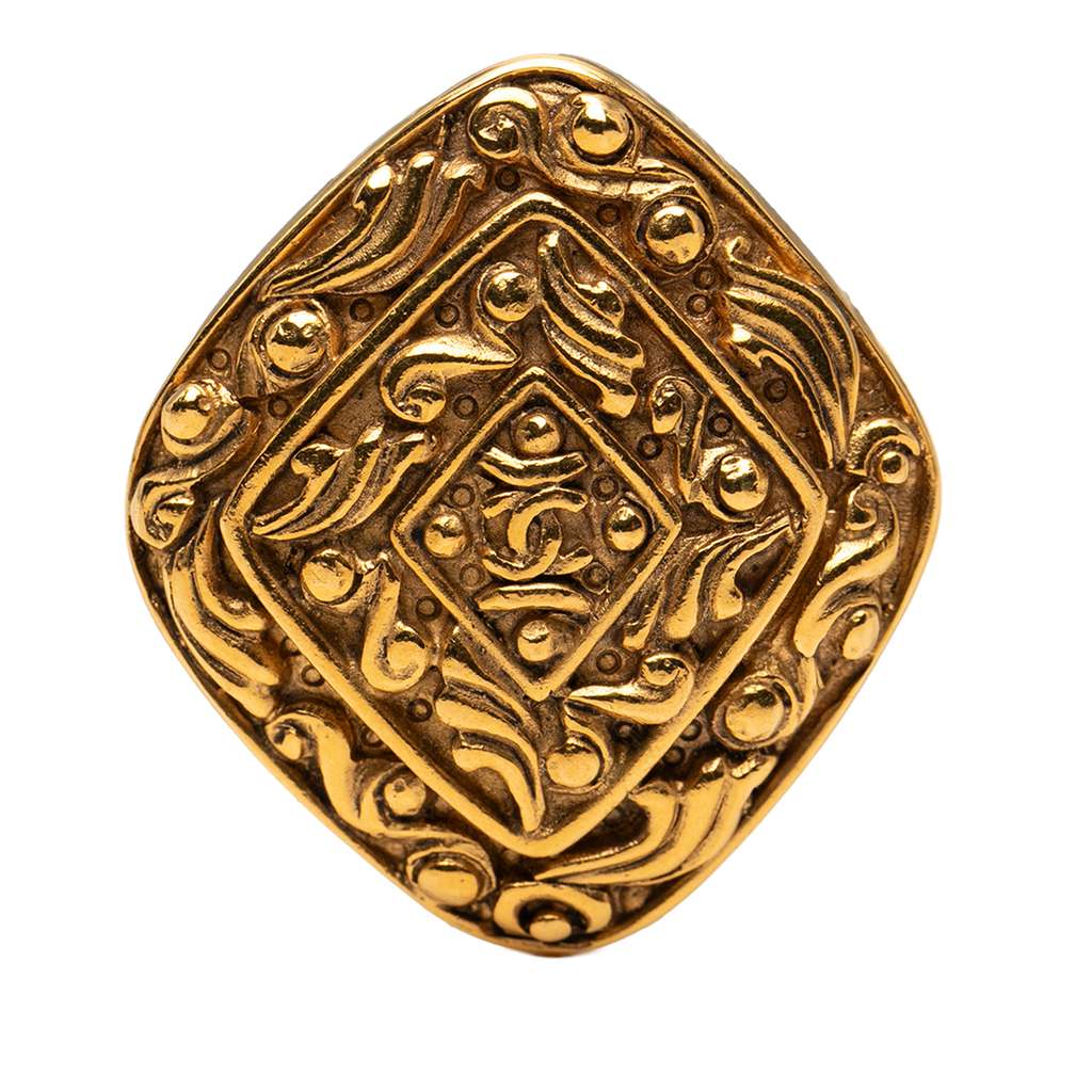 Chanel CC Gold Plated Diamond Byzantine Brooch Gold Metal