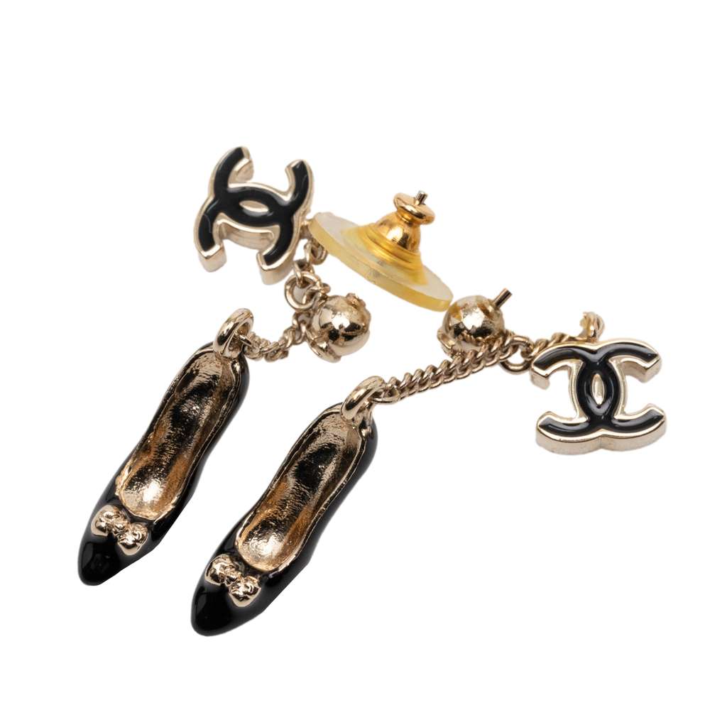 Chanel CC Gold Plated Enamel Heels Push Back Earrings Gold M