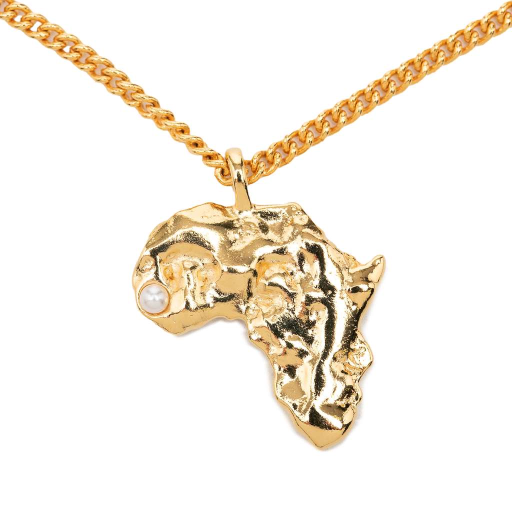CC Gold Plated Faux Pearl African Map Pendant Necklace