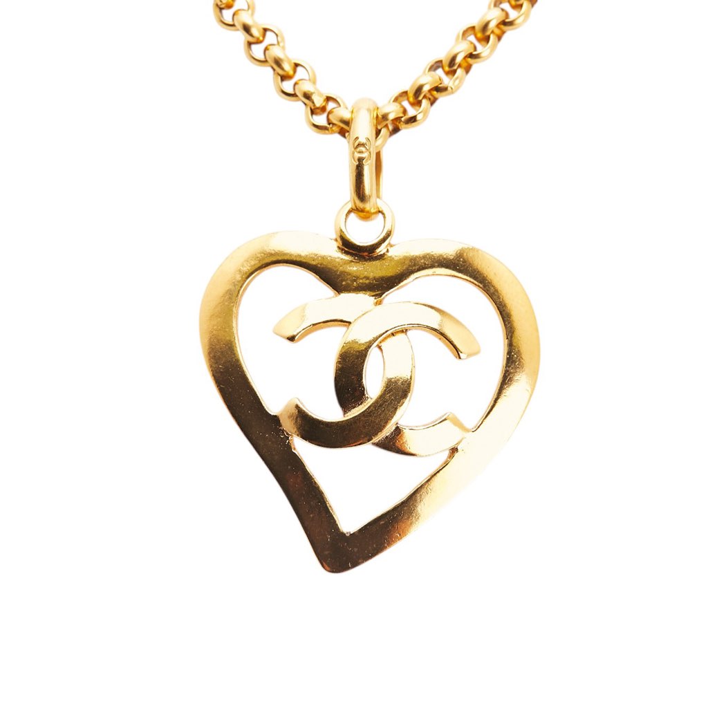 This necklace features a gold-tone pendant, a gold-tone chain, and a spring ring closure.