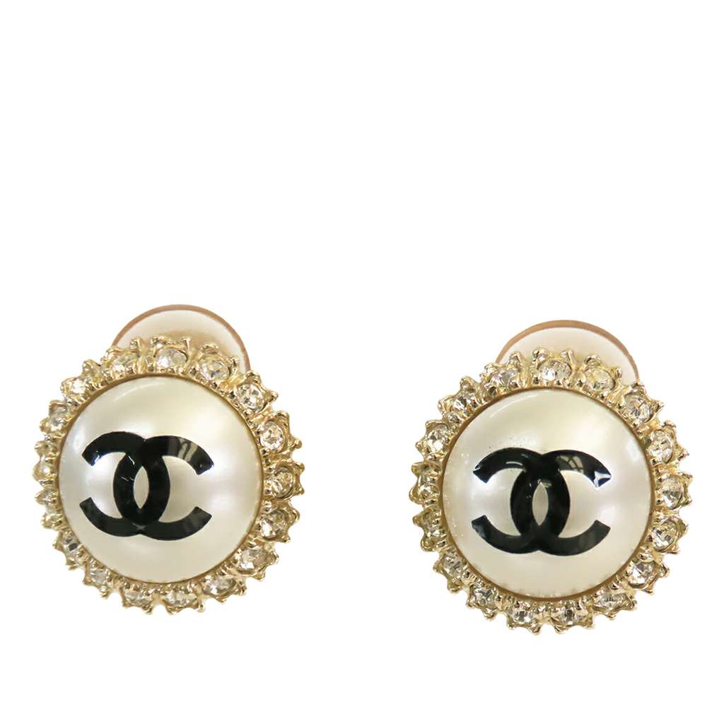 Chanel CC Gold Plated Lacquered Faux Pearl and Rhinestone Cl