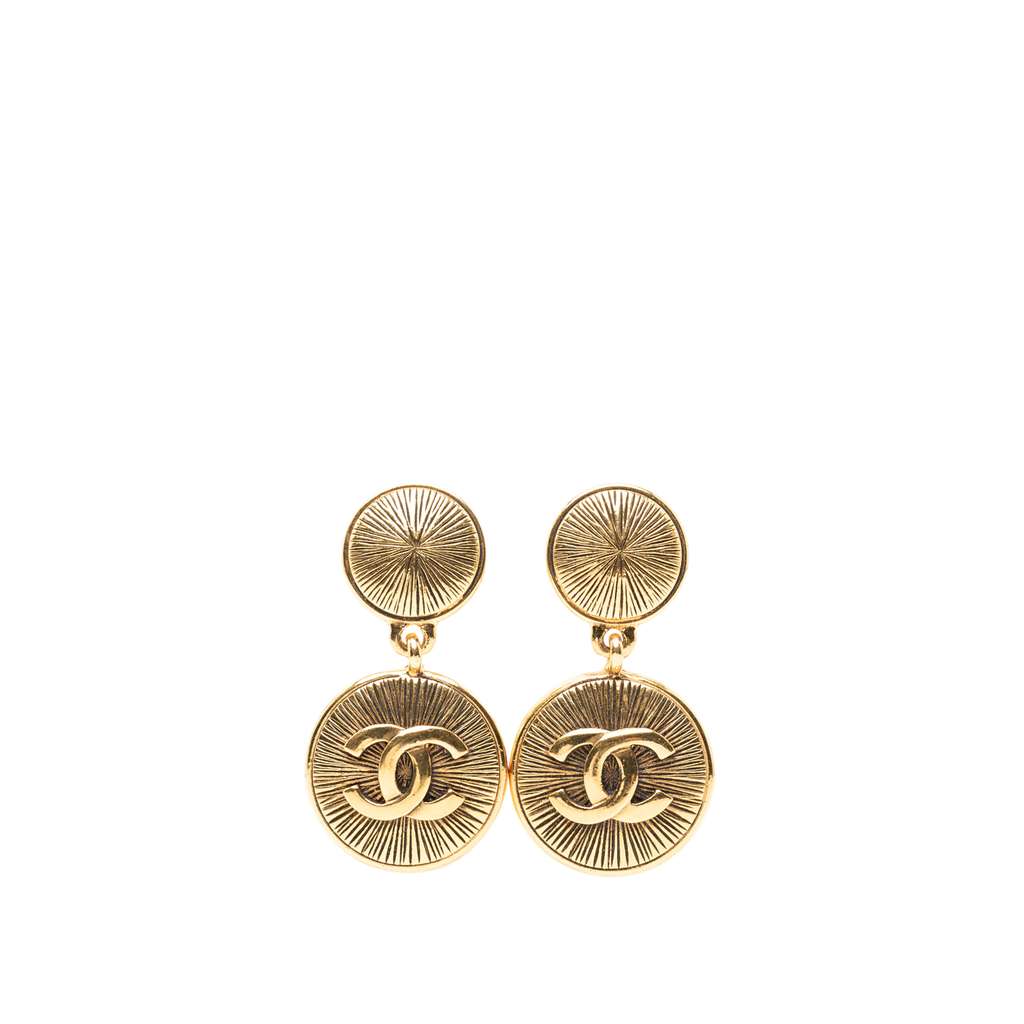 These earrings features a gold plated metal body and clip on closures.
