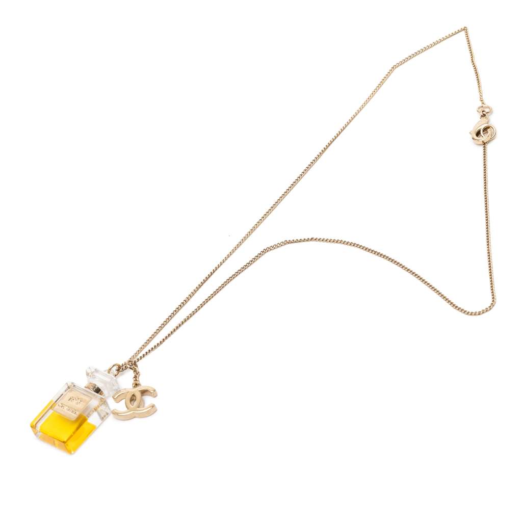 Chanel CC Gold Plated No 5 Perfume Bottle Pendant Necklace G