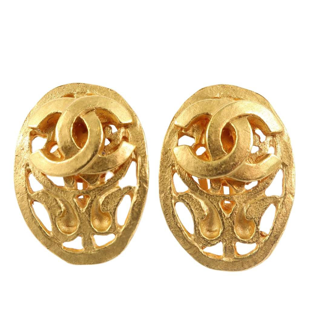 Chanel CC Gold Plated Oval Clip On Earrings Gold Metal