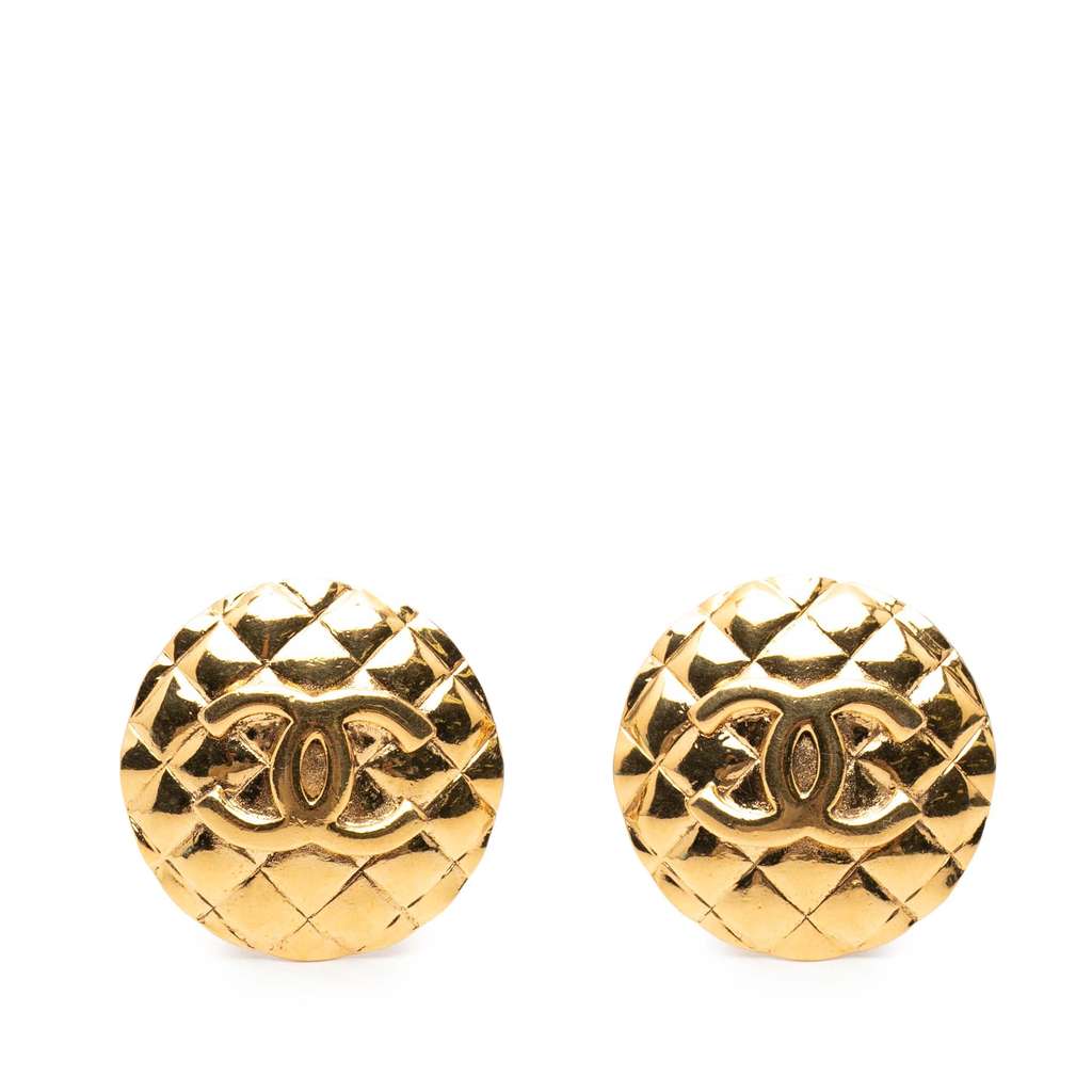 Chanel CC Gold Plated Quilted Round Clip-on Earrings Gold Me