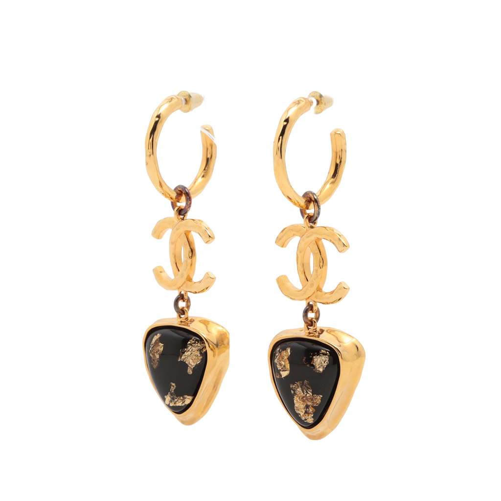 These earrings feature gold plated bodies, resin embellishments, and push-back closures.