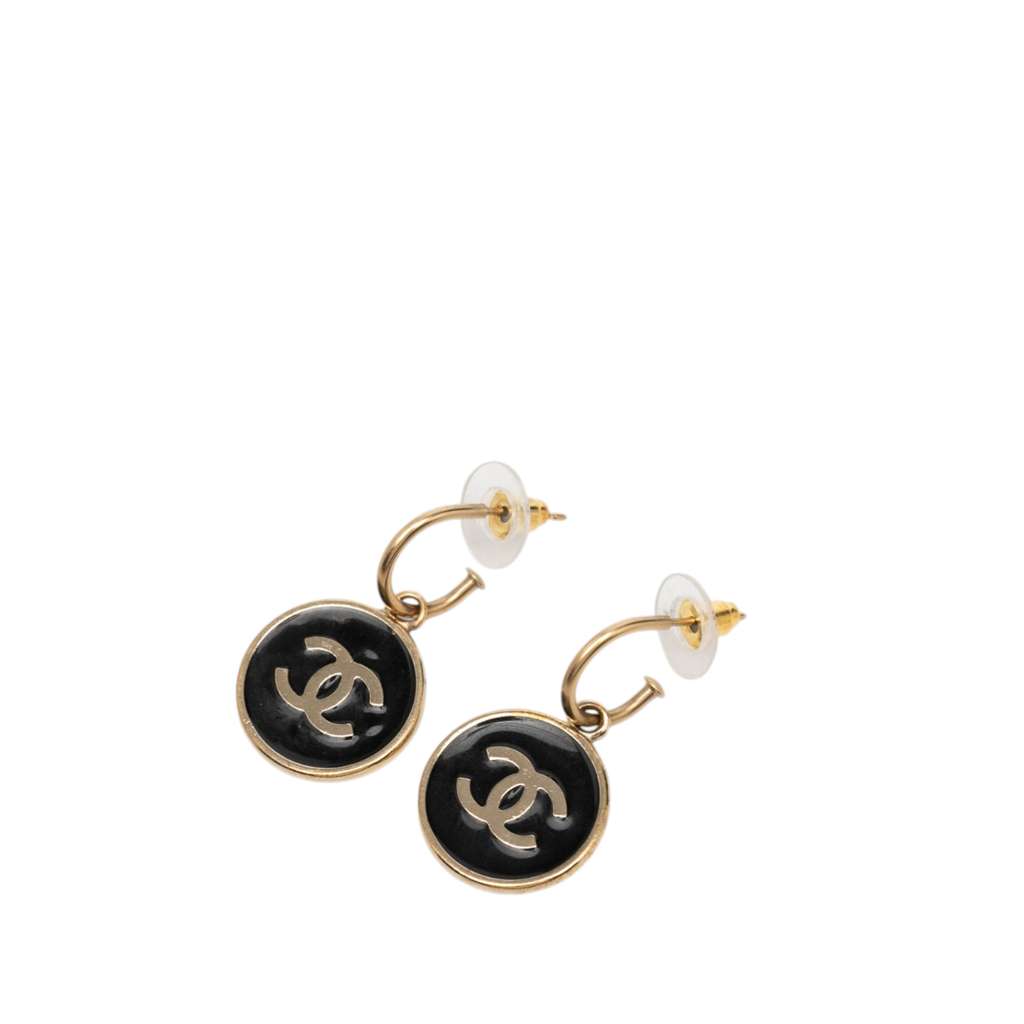 Chanel CC Gold Plated Resin Round Swing Push Back Earrings G