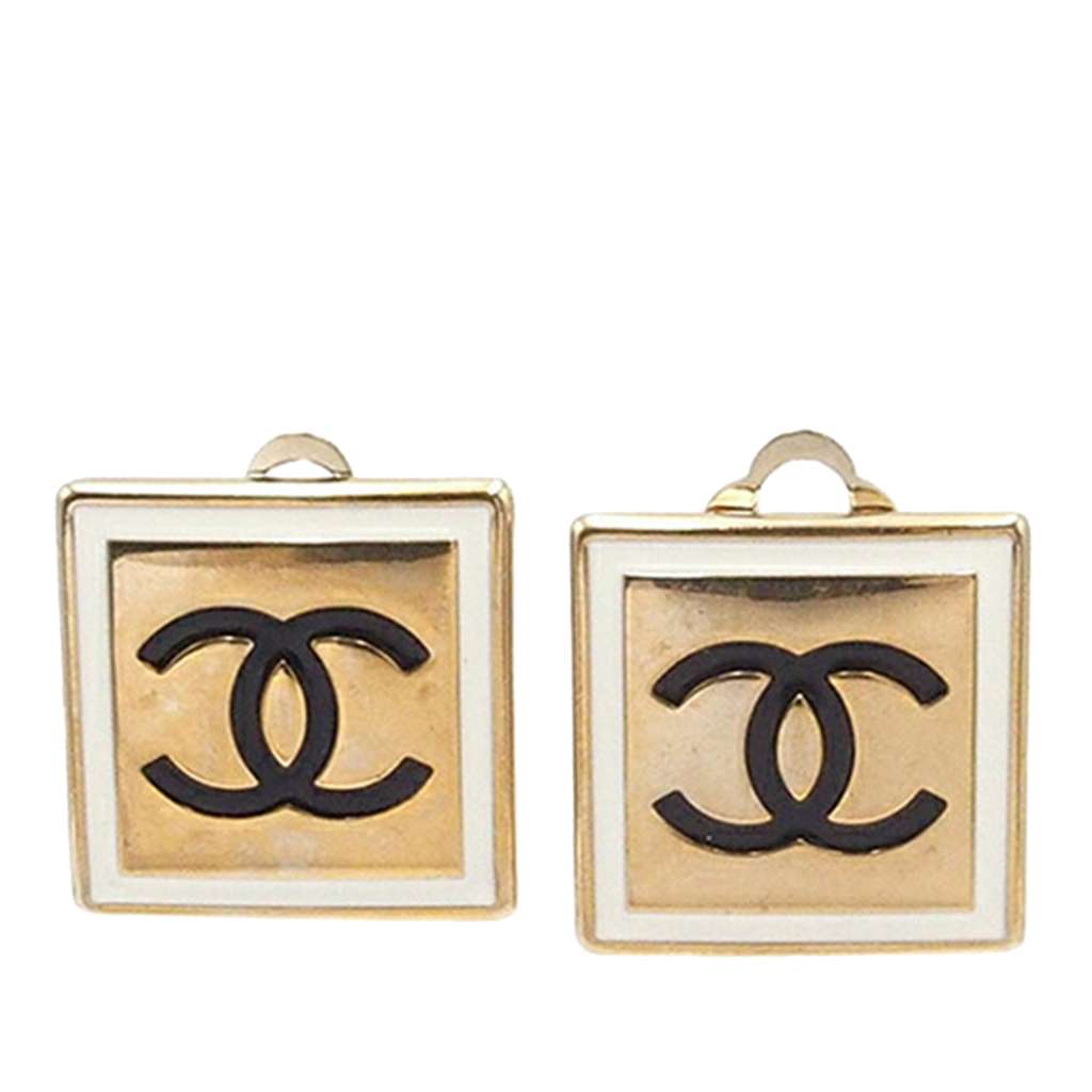 These earrings feature a gold-tone metal and resin body, and clip on closure.