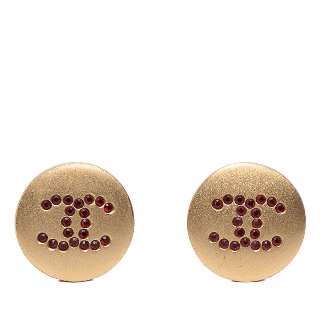 Chanel CC Gold Plated Rhinestone Round Clip On Earrings Gold
