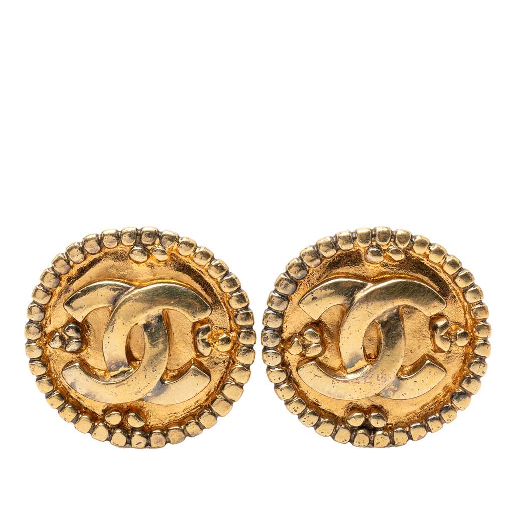 Chanel CC Gold Plated Round Clip On Earrings Gold Metal