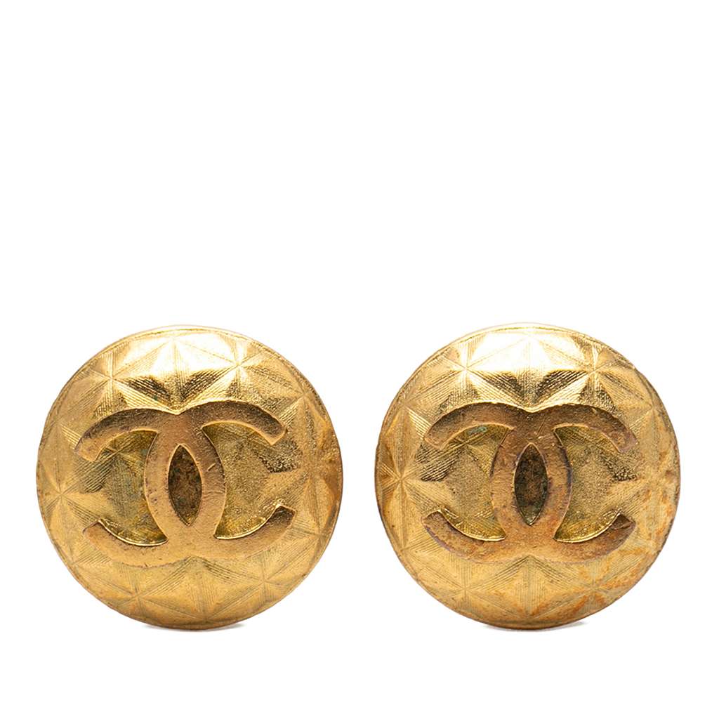 Chanel CC Gold Plated Round Clip On Earrings Gold Metal