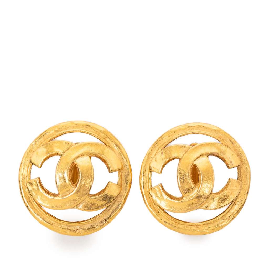 chanel gold plated cc round clip on earrings