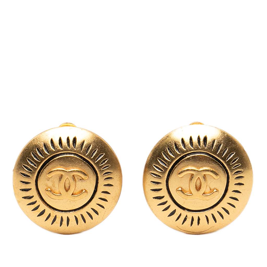 Chanel CC Gold Plated Round Clip On Earrings Gold Metal