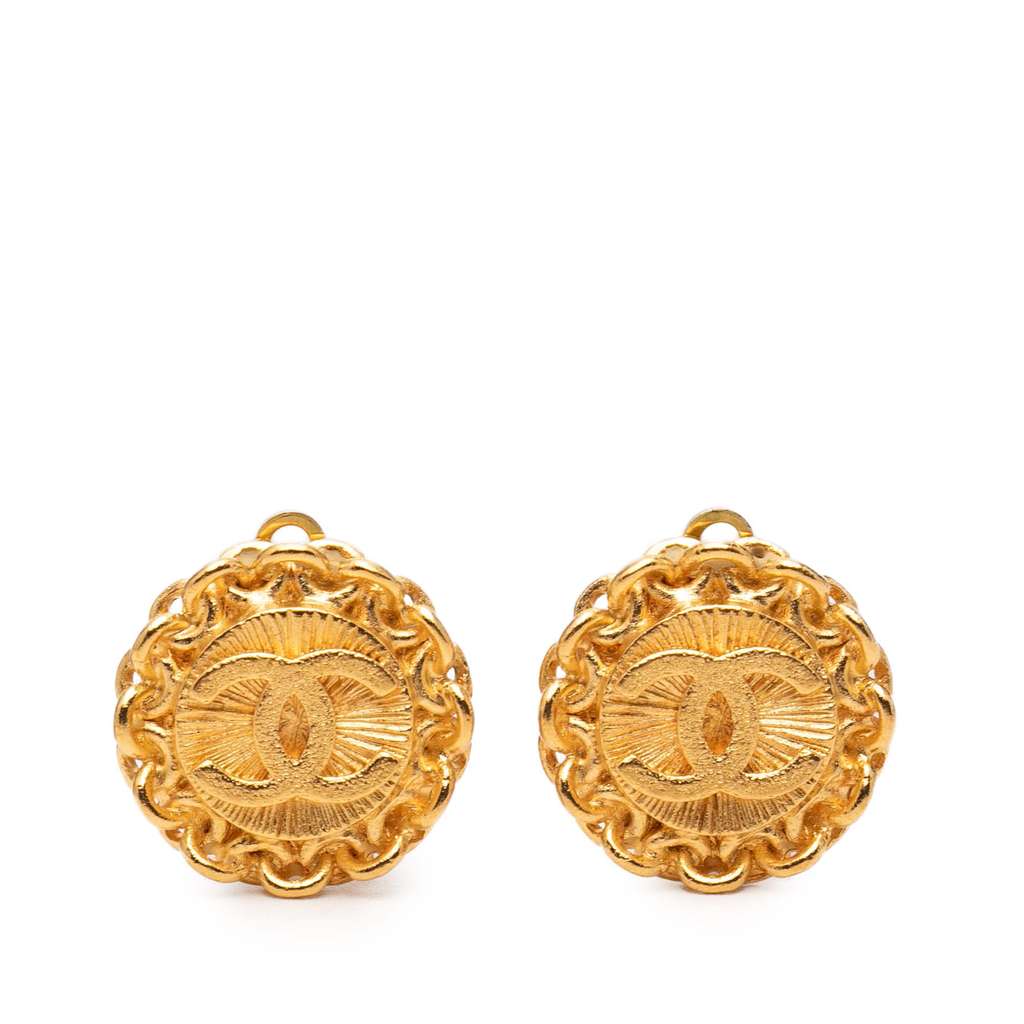 Chanel CC Gold Plated Round Clip On Earrings Gold Metal