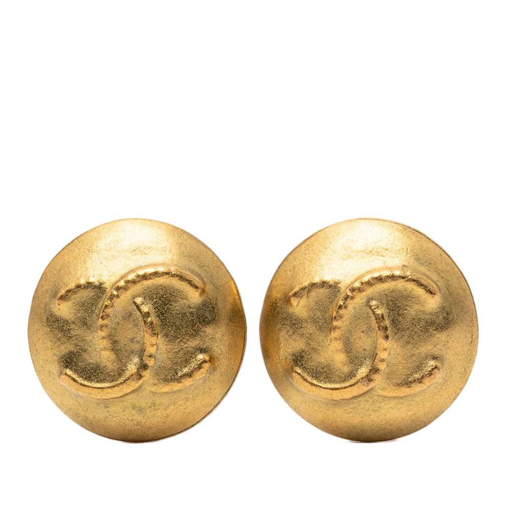 These earrings features a gold plated metal body and clip on closures.