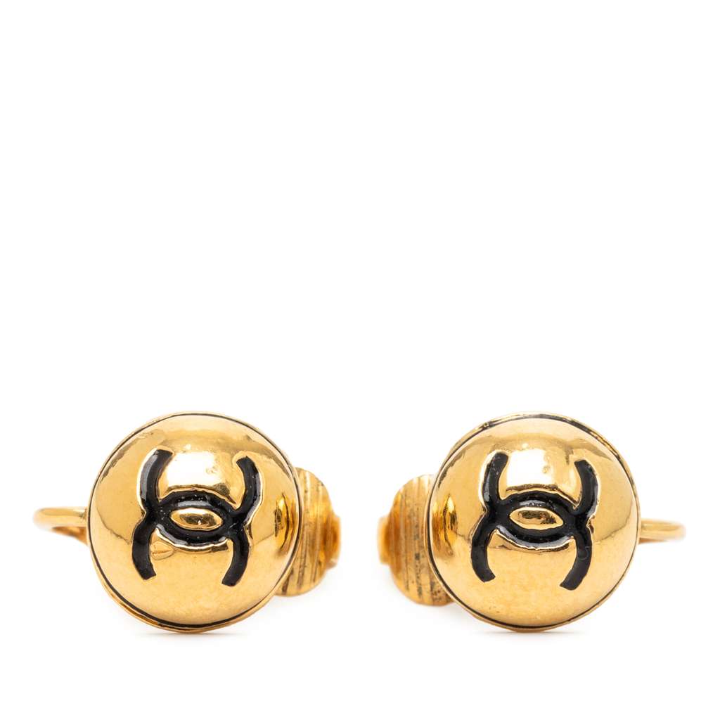 Chanel CC Gold Plated Round Clip On Earrings Gold Metal