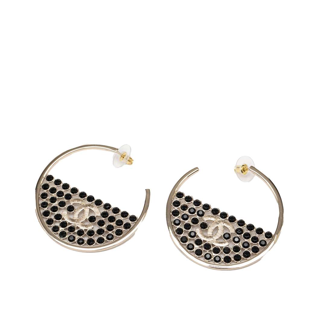 Chanel CC Gold Plated Strass Hoop Push Back Earrings Gold Me