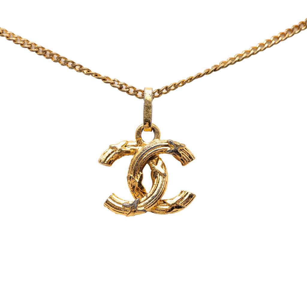 Chanel CC Gold Plated Textured Pendant Necklace Gold Metal