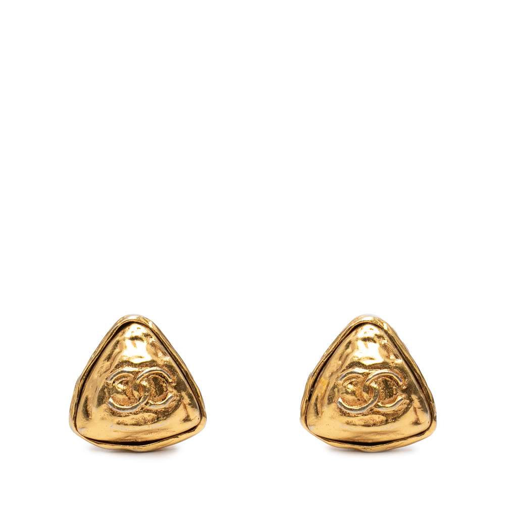 Chanel CC Gold Plated Triangle Clip On Earrings Gold Metal
