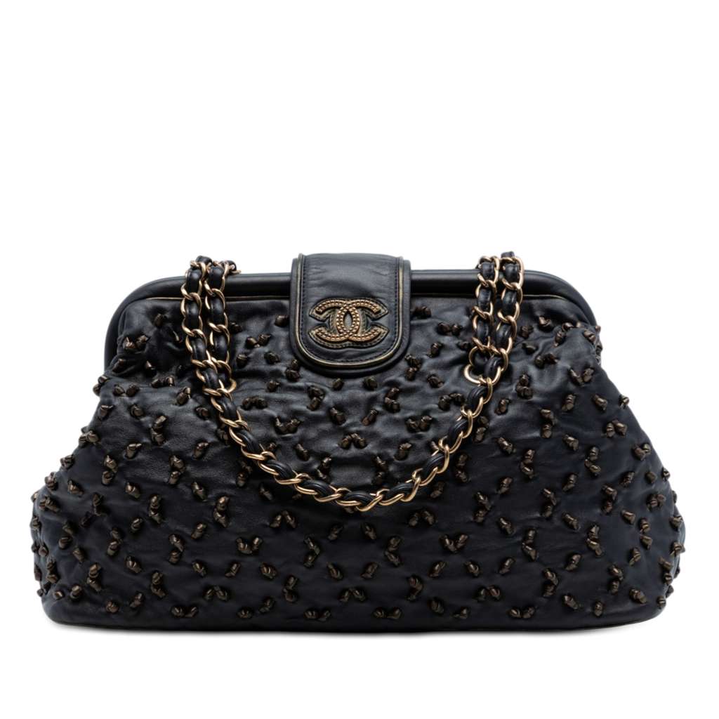 Chanel CC Lambskin Chic Knot Chain Shoulder Bag Black X-Larg