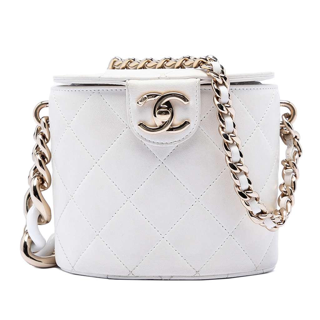 Chanel CC Lambskin Elegant Chain Vanity Case White Mini Leat