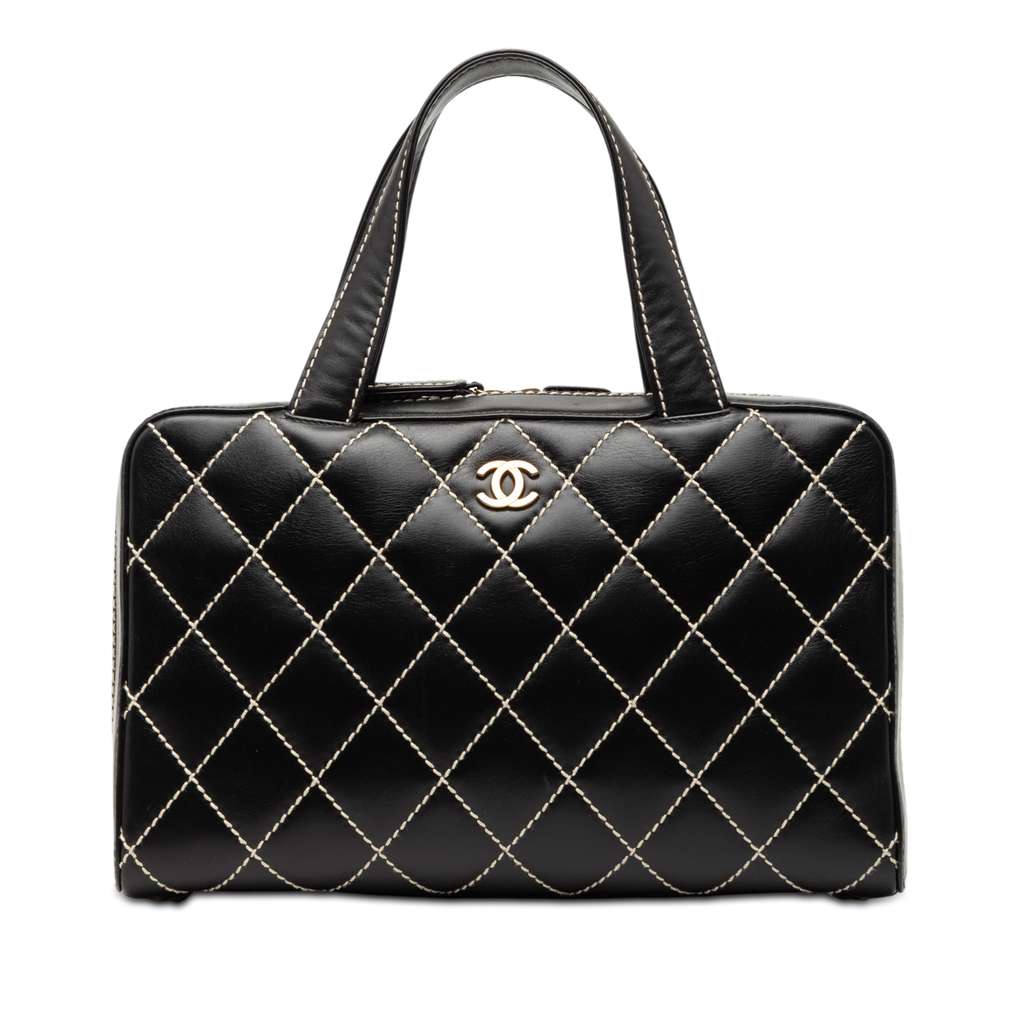 Chanel CC Lambskin Wild Stitch Handbag Black Large Leather