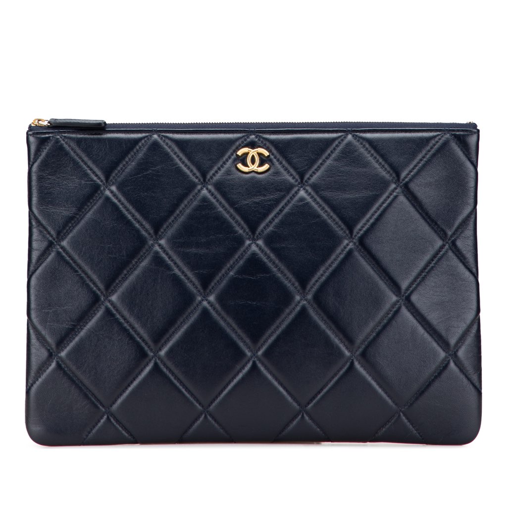 This clutch bag features a quilted lambskin leather body and a top zip closure.