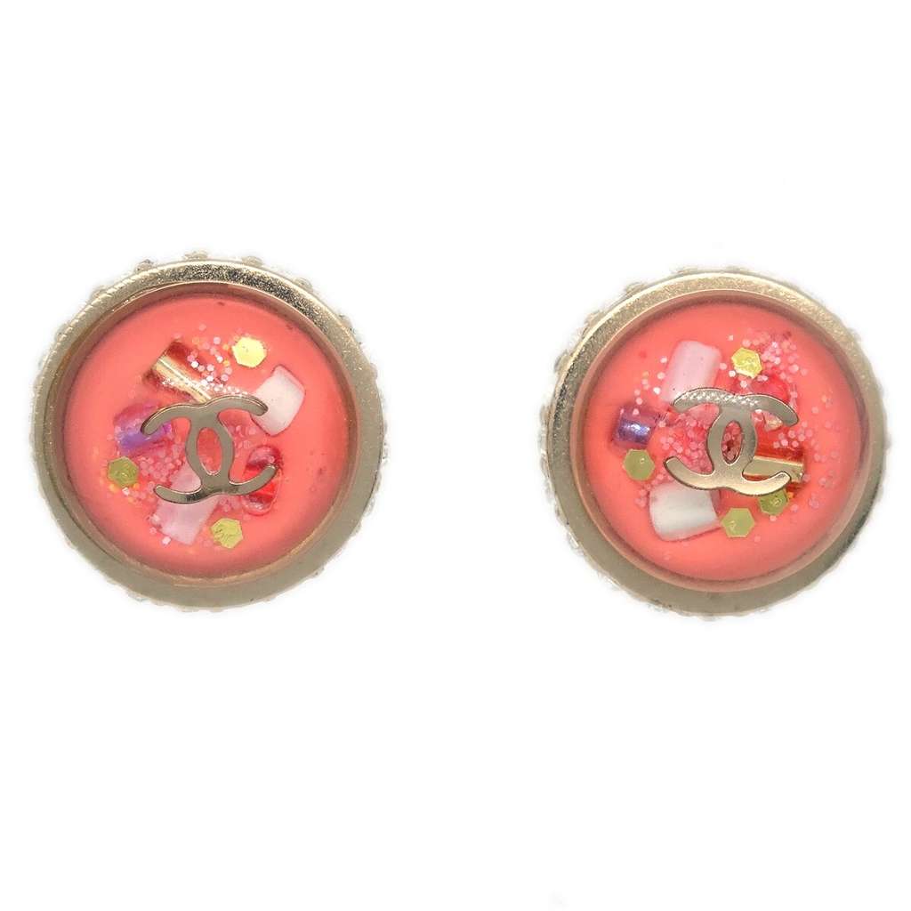 Chanel CC Logo Button Stud Earrings Pink Plastic | Pre-Loved