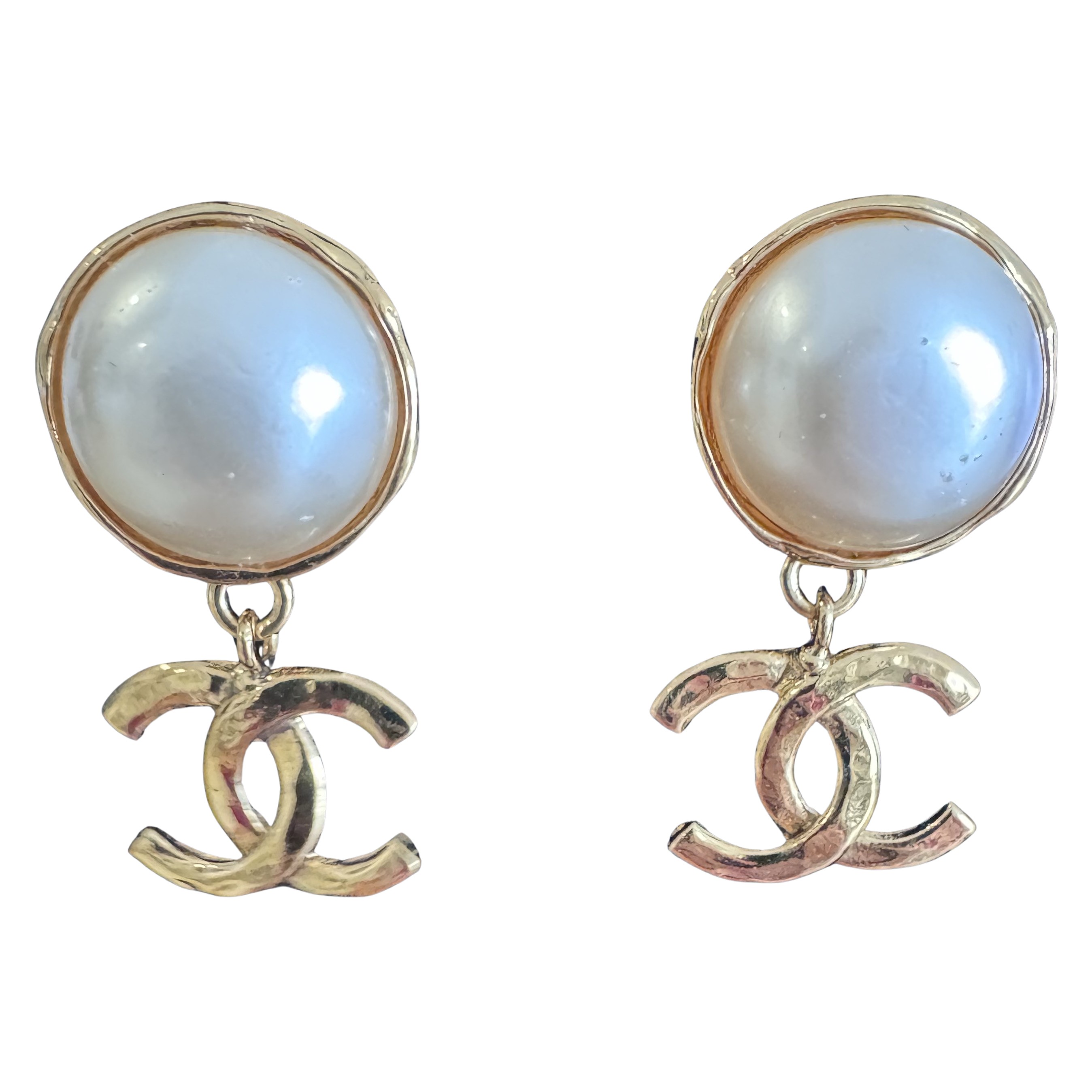 Chanel CC Logo Pearl Earrings Gold | Pre-Loved Luxury at Lib
