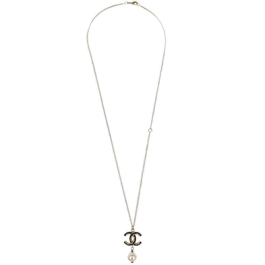 Chanel CC Pearl Drop Pendant Necklace Gold | Pre-Loved Luxur