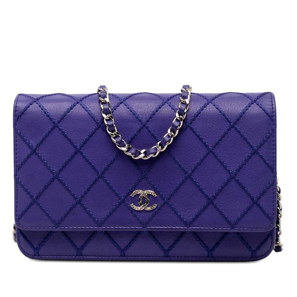 Chanel CC Quilted Calfskin Fancy Wallet On Chain Blue Mini L