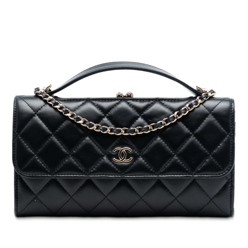 Chanel CC Quilted Calfskin Kiss Lock Flap Phone Holder On Ch