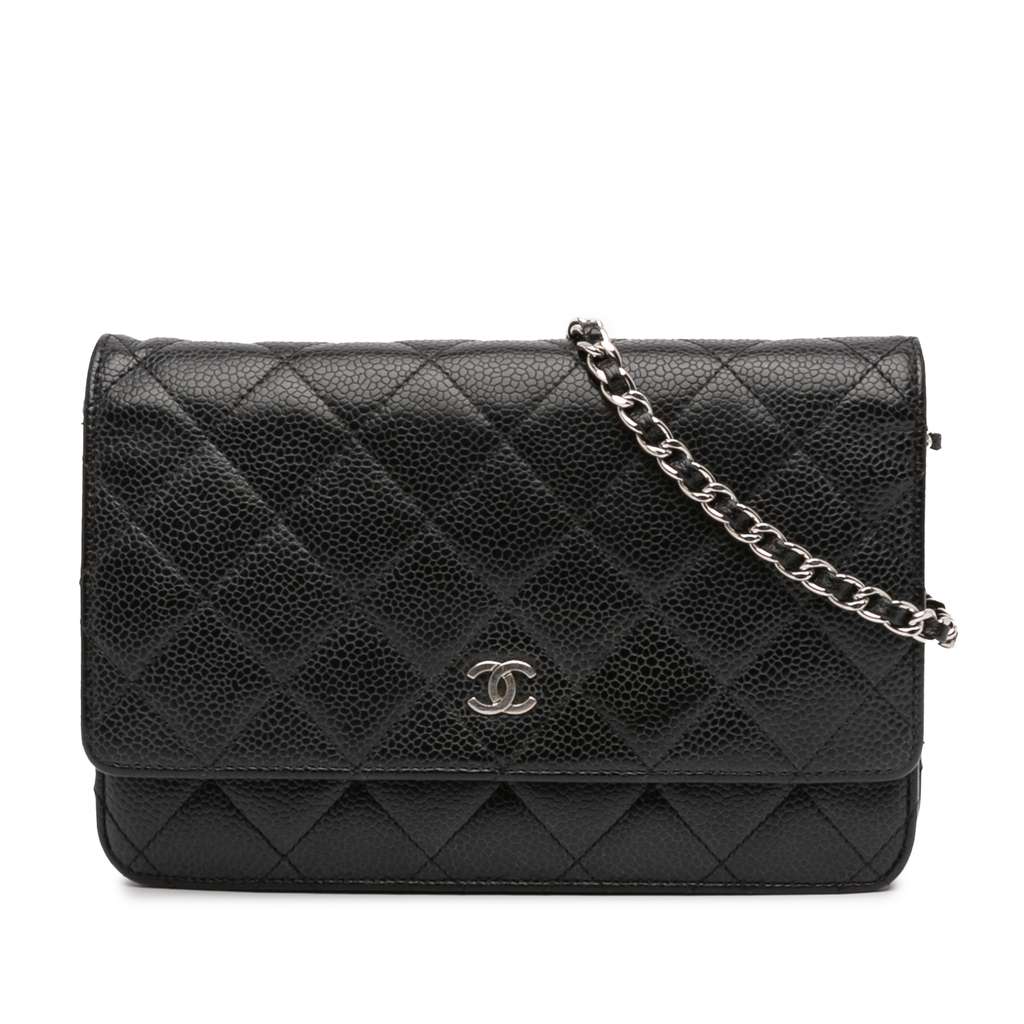 Chanel CC Quilted Caviar Wallet on Chain Black Mini Leather