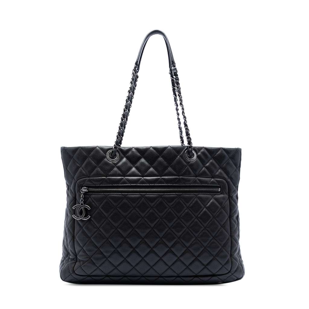 Chanel CC Quilted Caviar Zip Pocket Tote Black X-Large Leath