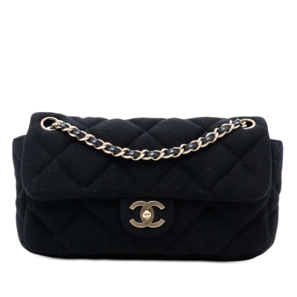 Chanel CC Quilted Jersey East West Flap Black Medium Cotton