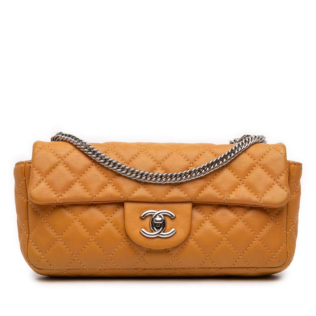 Chanel CC Quilted Lambskin East West Single Flap Orange Medi