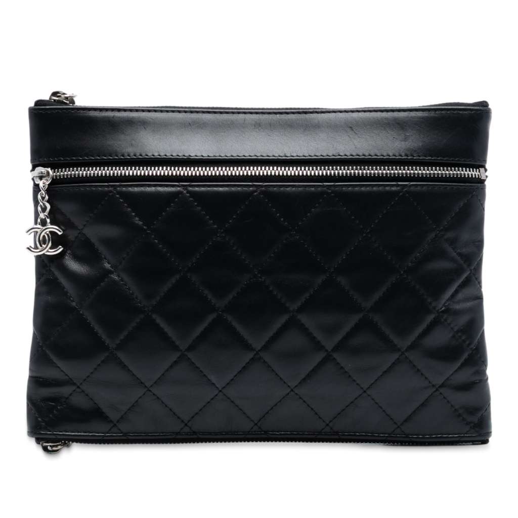 Chanel CC Quilted Lambskin Multi Zip Clutch Black Small Leat