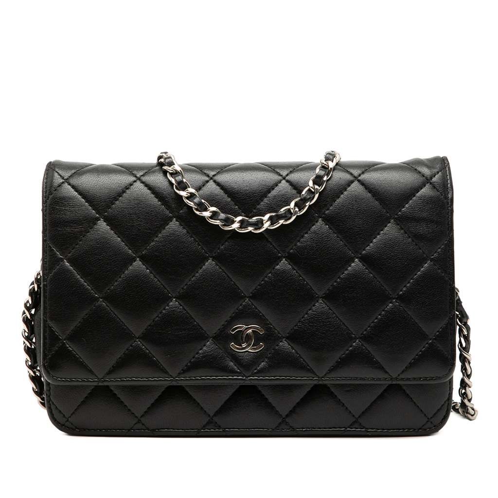 Chanel CC Quilted Lambskin Wallet On Chain Black Mini Leathe