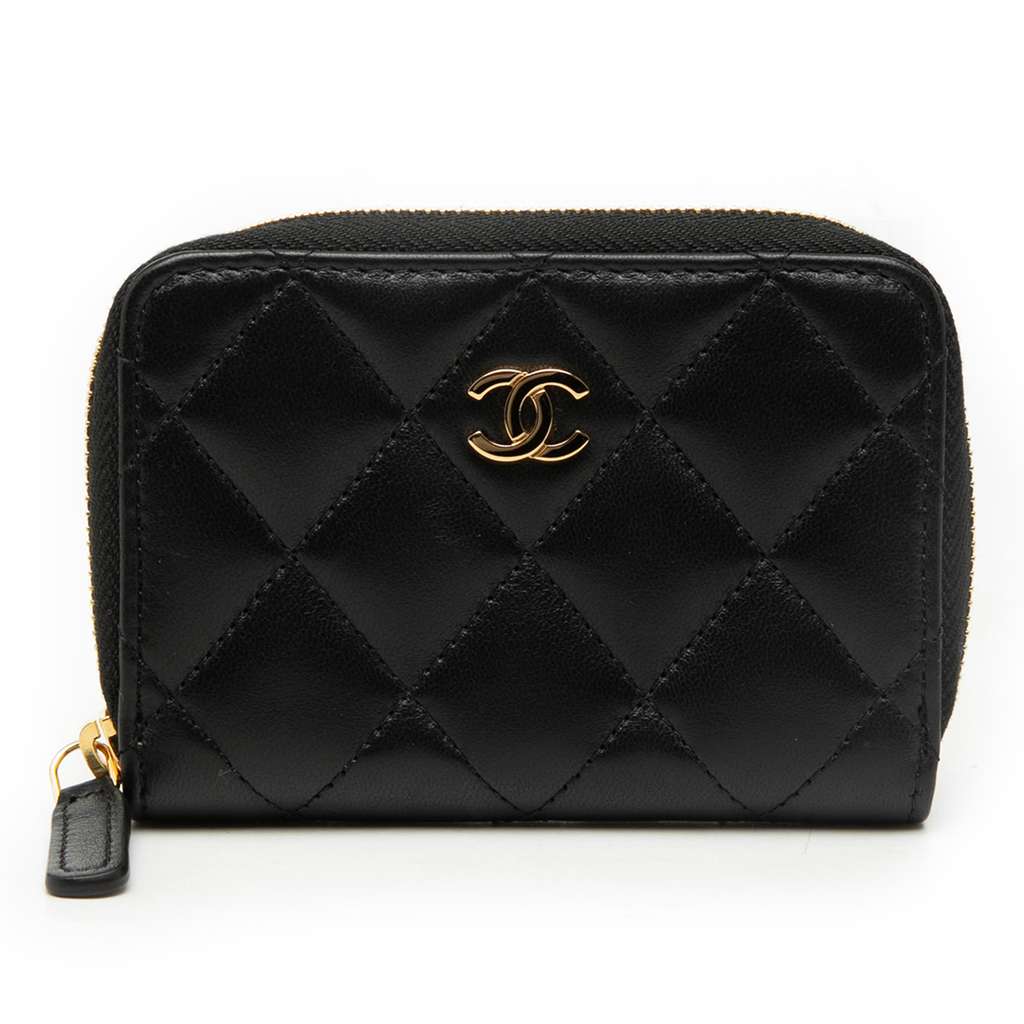 Chanel CC Quilted Lambskin Zipped Coin Purse Black Leather