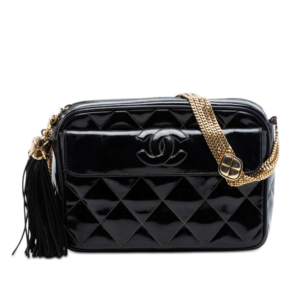 Chanel CC Quilted Patent Camera Bag Black Mini Leather