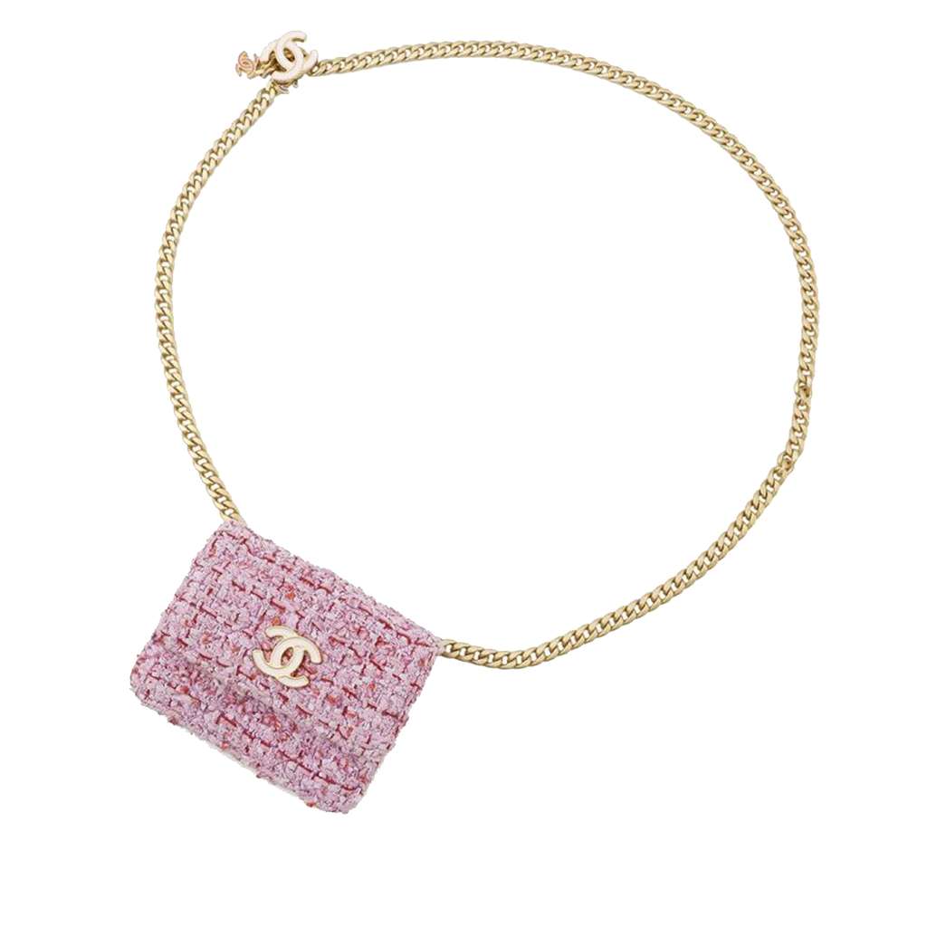 Chanel CC Quilted Tweed Flap Chain Belt Bag Pink Mini Tweed