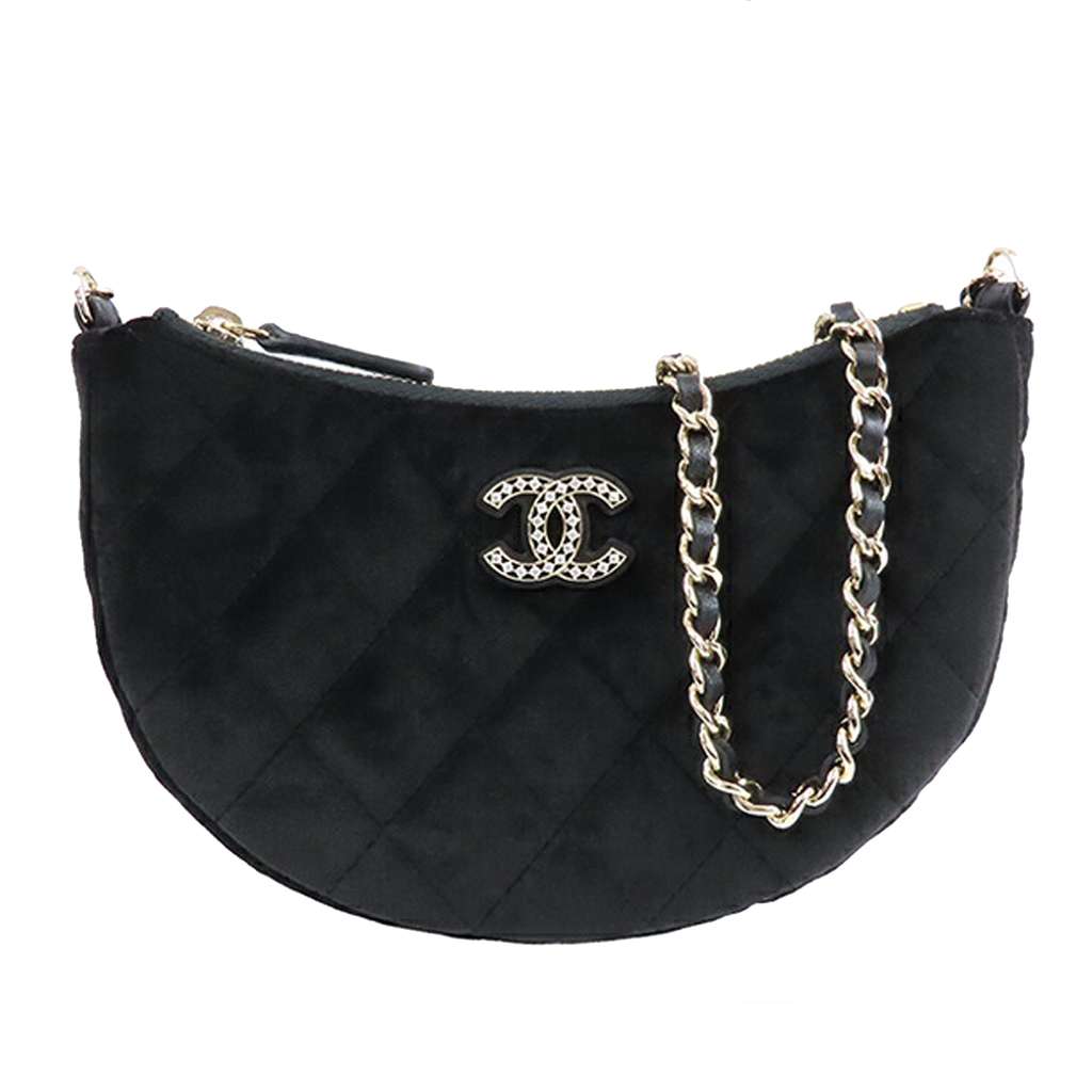 This crossbody bag features a leather body crystal embellished Chanel logo, a gold- tone flat woven leather shoulder strap, a top zip closure.